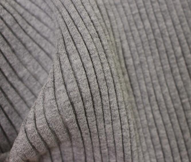 7*5 Ribbestrikk:Stoffet er strikket i en 7*5-ribbekonstruksjon, noe som gir en strukturert overflate med vertikale ribber. Ribbestrikkingen skaper en iboende elastisitet som gir stoffet stretch og restitusjon. Denne konstruksjonen gjør at stoffet har en tettsittende passform samtidig som det puster godt, noe som gjør det ideelt for klær som må kunne tøyes uten å miste formen.